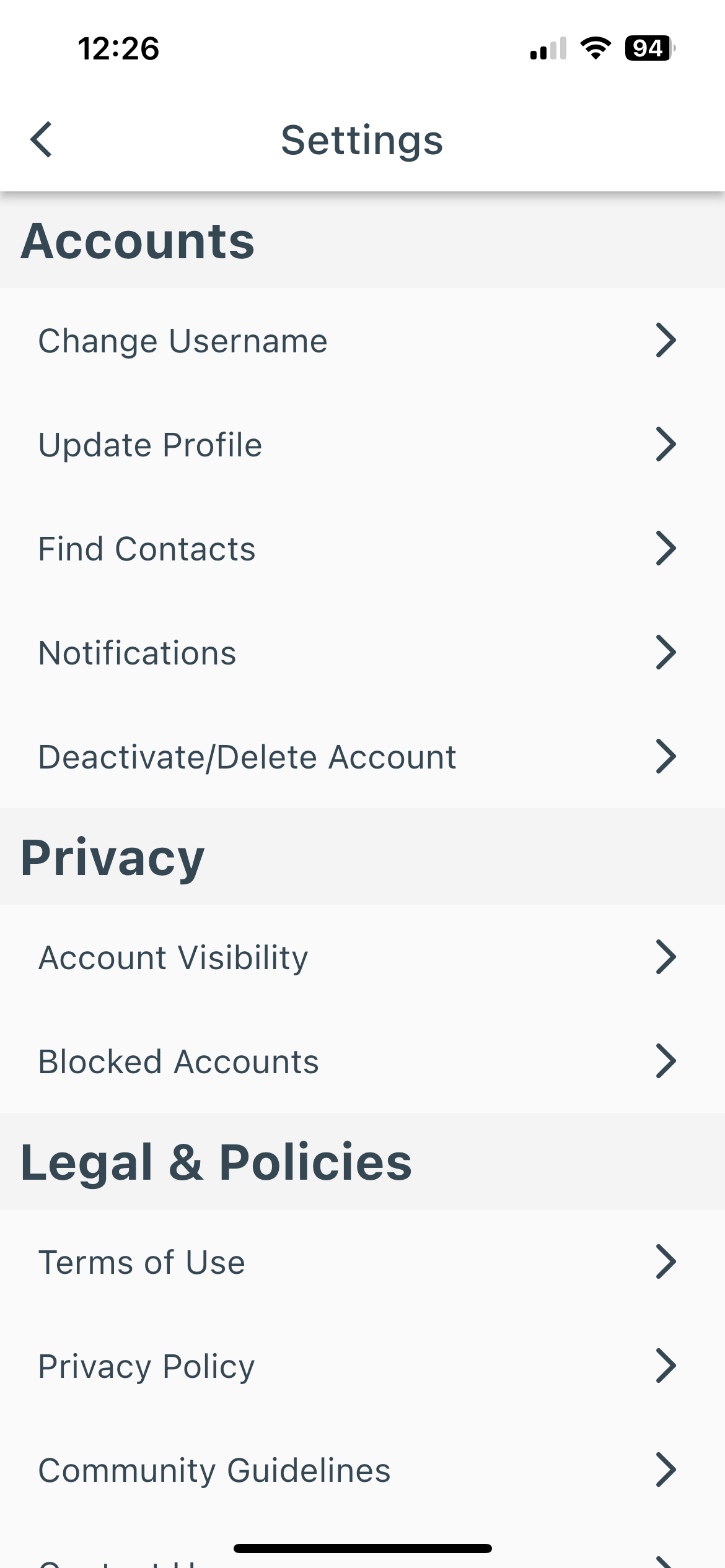 After tapping on the settings icon, that will take you to a new screen where you can select “Deactivate/Delete Account.” Tap on that selection.
